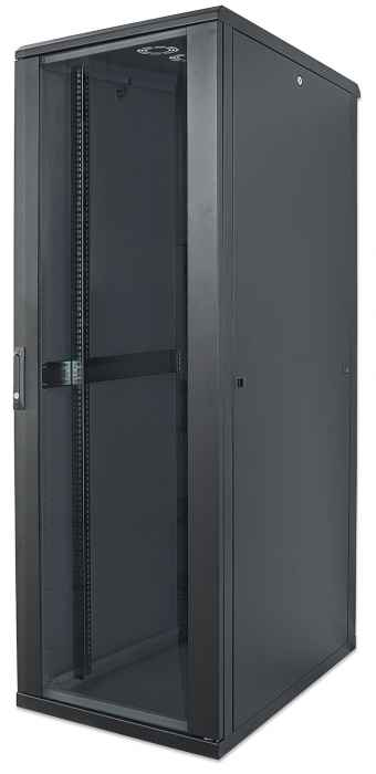 Los gabinetes de red Intellinet te ofrecen una solución flexible y completa para tus instalaciones de red.En términos de almacenaje, tienes númerosas opciones de 19″ con profundidades de instalación desde 600 hasta 800 mm: Con alturas desde 22 hasta 42 unidades en color negro (RAL9005), te ofrecemos una solución para cada necesidad. Los páneles laterales desmontables y la puerta de vidrio templado hacen que el cableado y el cambio de componentes sea fácil.En materiales y mano de obra, brindamos calidad. Parte de esto es el cuadro de acero laminado, los postes niquelados para montaje de 19″ y cubierta en polvo antiestático en todos los páneles.