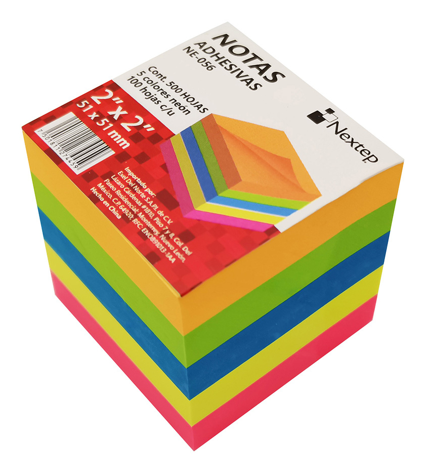 Nextep NE-056. Factor de forma: Plaza, Color del producto: Azul, Verde, Naranja, Rosa, Amarillo. Ancho: 51 mm, Profundidad: 51 mm. Número de hojas por bloque: 100 hojas