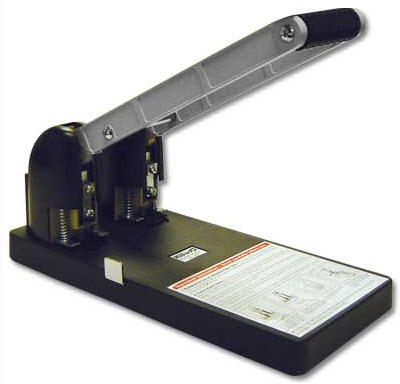Fabricada en acero, dos punzones fijos, distancia de perforación 8 cms y incluye una guía de centrado de hojas